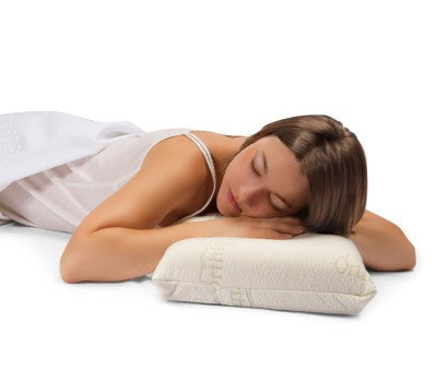 Espuma de viscoelástico de recuperação lenta e fácil moldagem, sensível à pressão e temperatura corporais. Espuma de menor densidade tornando a almofada mais leve e suave para um maior conforto. Moldando-se ao contorno da coluna cervical, fornece um apoio mais uniforme, permitindo o relaxamento dos músculos do pescoço.