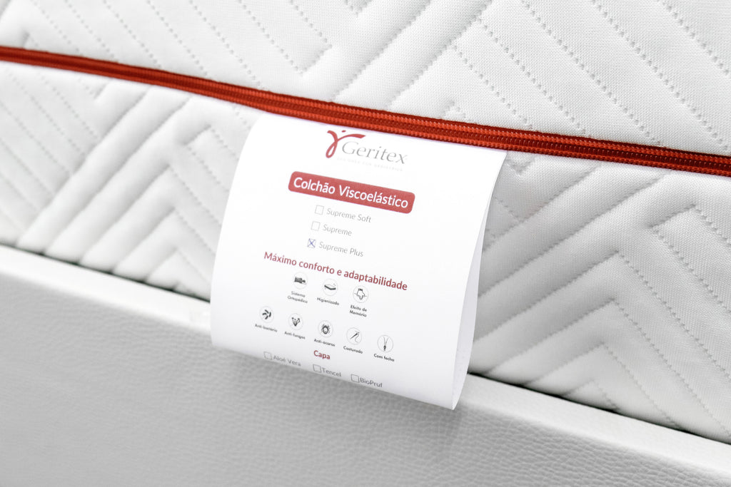Fabricado pela marca nacional Geritex, o colchão Supreme Plus apresenta uma estrutura robusta e firme, concebida para quem prefere um apoio mais consistente sem abrir mão do conforto. O seu núcleo garante estabilidade e uma correta distribuição do peso corporal, mesmo nas zonas de maior pressão.