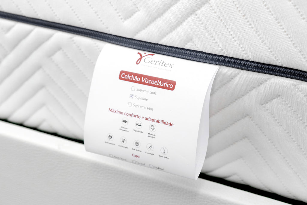 Fabricado pela marca nacional Geritex, o colchão Supreme é um modelo equilibrado, que combina firmeza média com o conforto da espuma viscoelástica. Garante alívio da tensão corporal e distribuição uniforme dos pontos de pressão, proporcionando noites de sono tranquilas e contínuas.