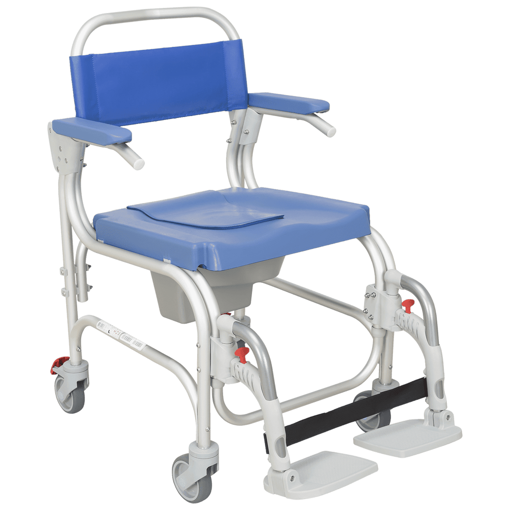 A cadeira de banho e sanitária ATLANTIC é um modelo "2 em 1": fabricada em materiais que permitem o uso no banho (estrutura em alumínio anodizado, com elevada resistência e durabilidade, tendo uma composição que evita a oxidação na presença de humidade). Tem como mais-valia a existência de apoia braços rebatíveis de modo a facilitar as transferências e patins de abertura bilateral, destacáveis e rebatíveis para dentro e para fora. Permite a utilização direta da cadeira sobre a sanita, ou utilização através da aparadeira. A aparadeira destaca-se pela sua largura e profundidade, impedindo a existência de fugas e facilidade de limpeza e desinfeção. Este modelo apresenta um assento em "poliuretano integral skin", extremamente confortável, com formato anatómico, abertura posterior em cunha e tampa e 4 rodízios de 100mm, sendo 2 com travão. Um produto que facilitará o dia-a-dia do utilizador e cuidadores, na medida em ajuda a evitar as idas à casa de banho durante a noite e auxilia nas deslocações para o banho, reduzindo o número de transferências efetuadas..