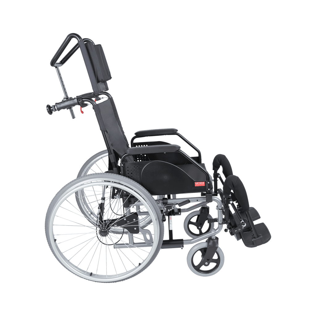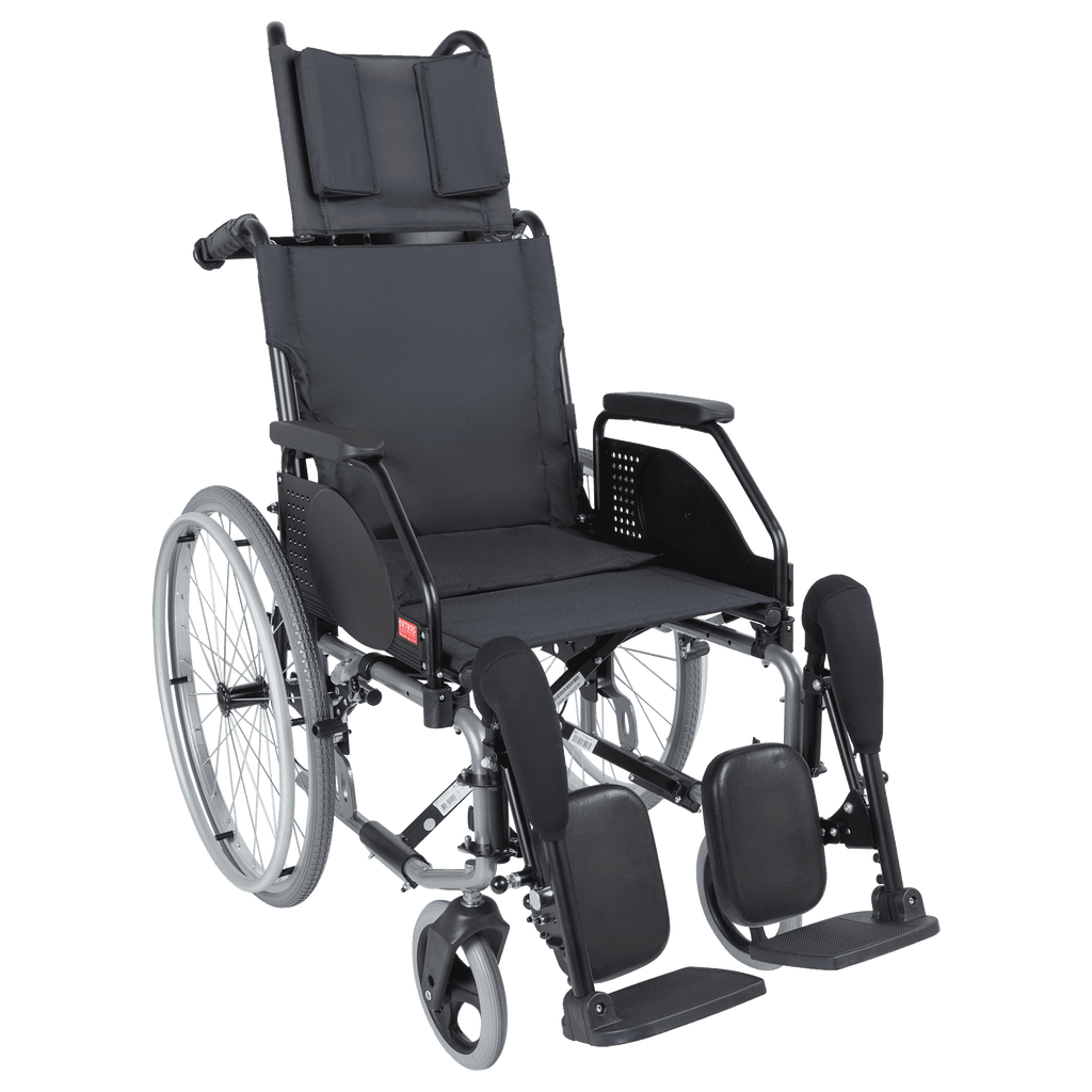 A cadeira de rodas manual CELTA CAMA permite ao utilizador assumir a posição horizontal de forma confortável, combinando a reclinação de costas com a elevação dos patins. Reclinação de costas controlada ao nível dos punhos, desde 90º a 170º. Estrutura reforçada e cruzeta tripla para proporcionar maior resistência. Apoio de cabeça com cunhas laterais, ajustável em altura, e suportes de tronco para maior conforto e estabilidade do utilizador. Apoia-braços facilmente destacáveis, patins elevatórios destacáveis e rebatíveis para fora, com apoio almofadado para a região posterior das pernas. Encartável para facilitar o transporte. Peso máximo utilizador de 125Kg