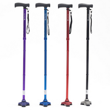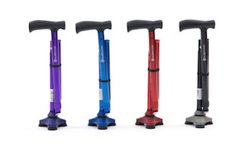 Bengala dobrável com punho ergonômico de dupla densidade suave, com ponteira estabilizadora revolucionária que gira 360º para oferecer efeito dinâmico e segurança ao caminhar, ao apoiar a bengala no chão, fica com uma estabilidade extraordinária.