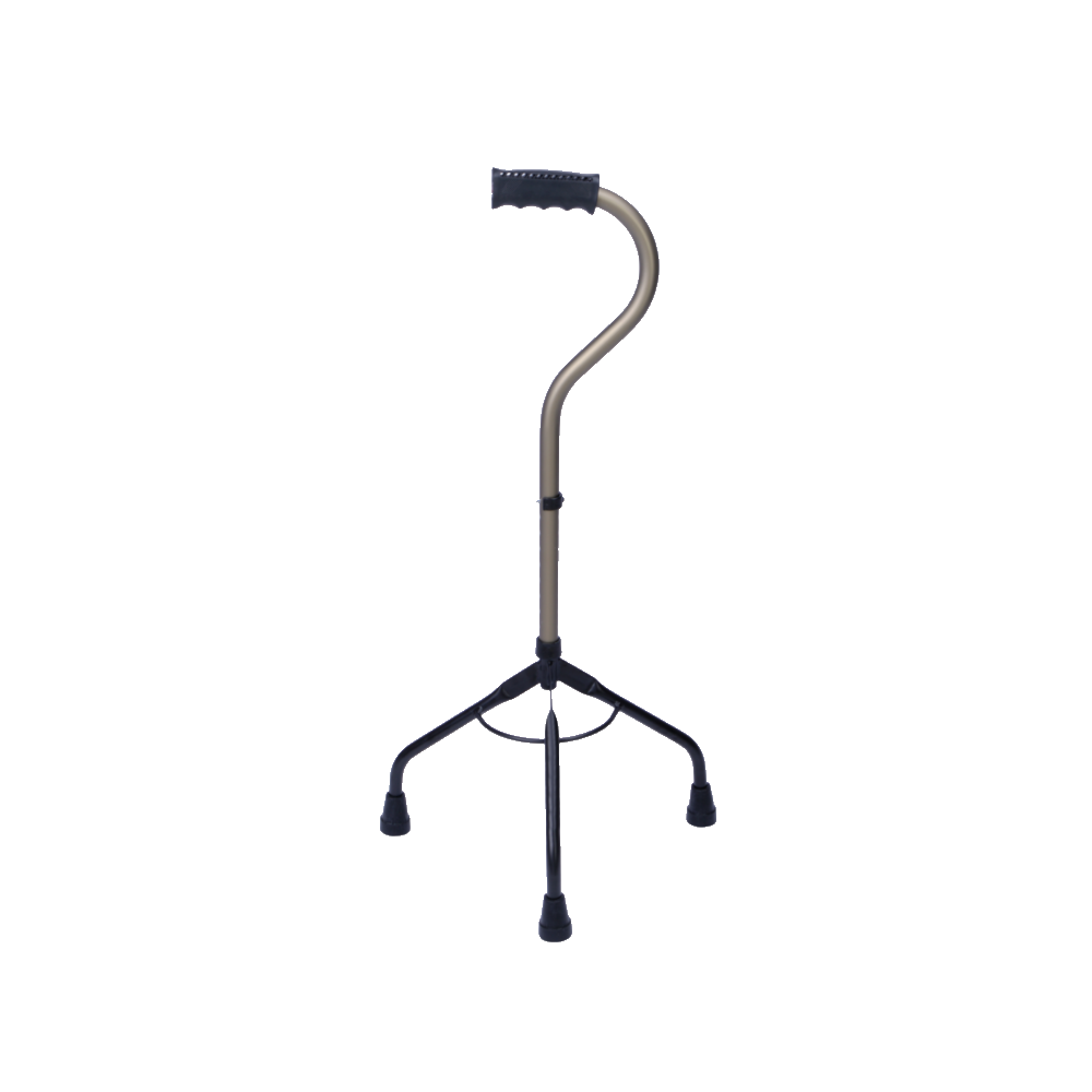 Bengala em alumínio com três apoios, que garante estabilidade e segurança.