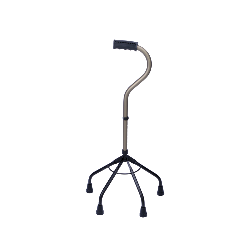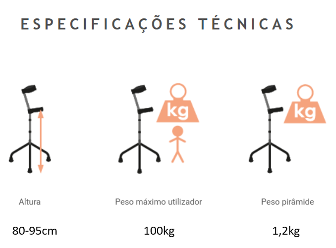 Bengala em alumínio com quatro apoios, que garante ainda maior estabilidade e segurança.
