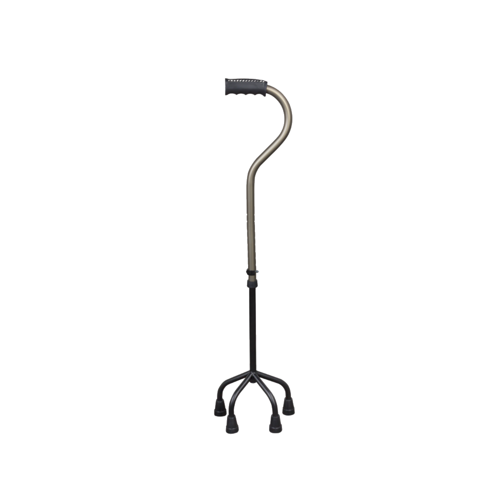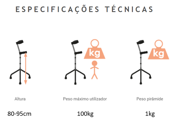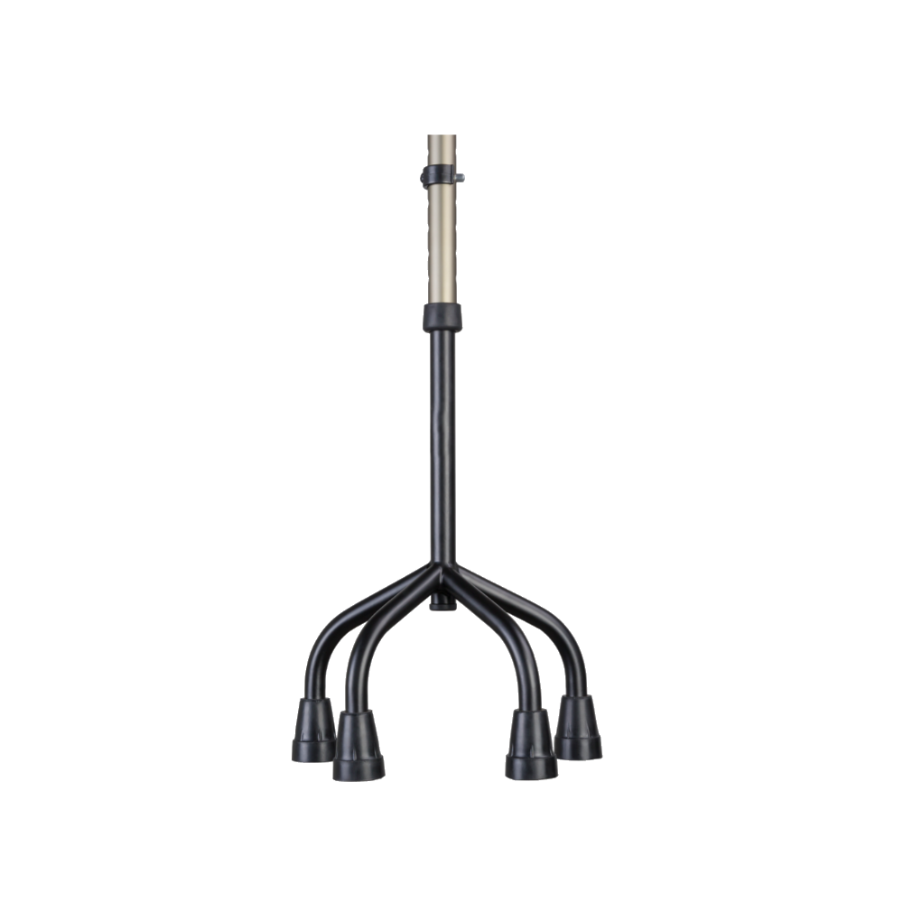 Bengala em alumínio com quatro apoios, que garante ainda maior estabilidade e segurança.