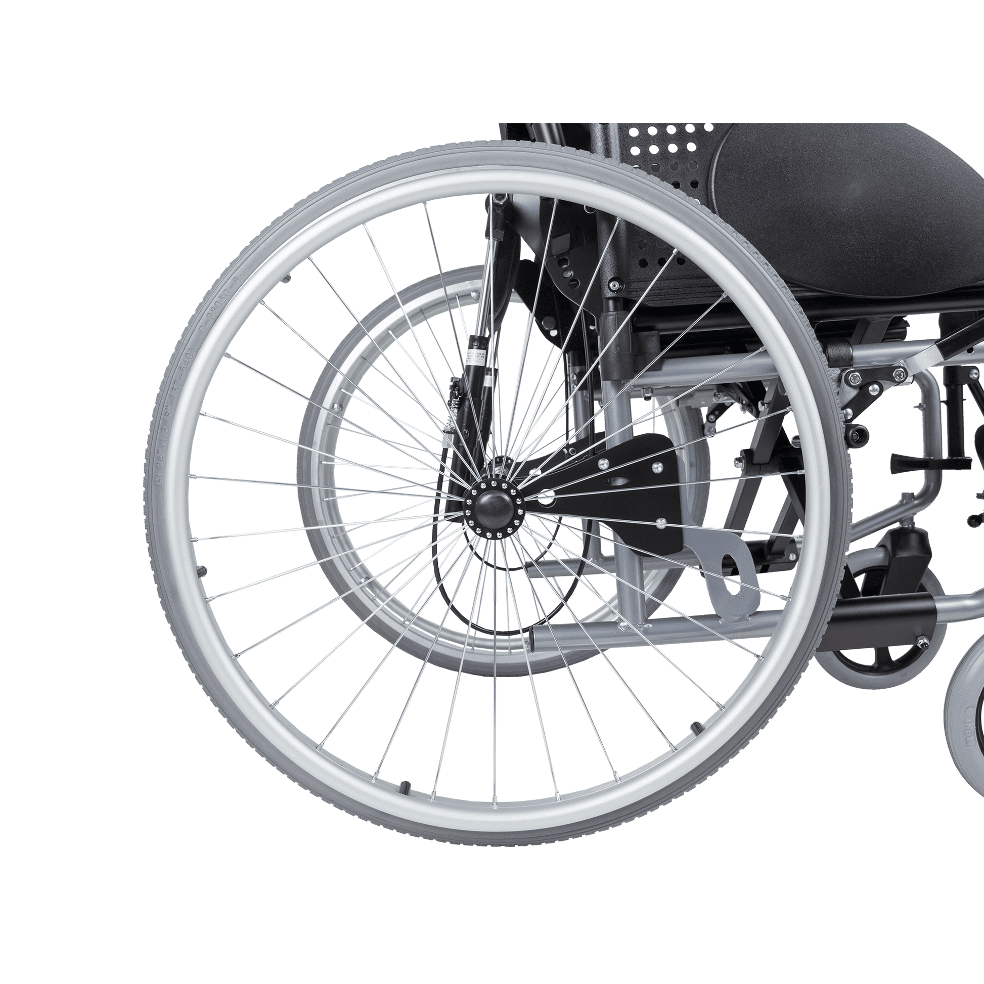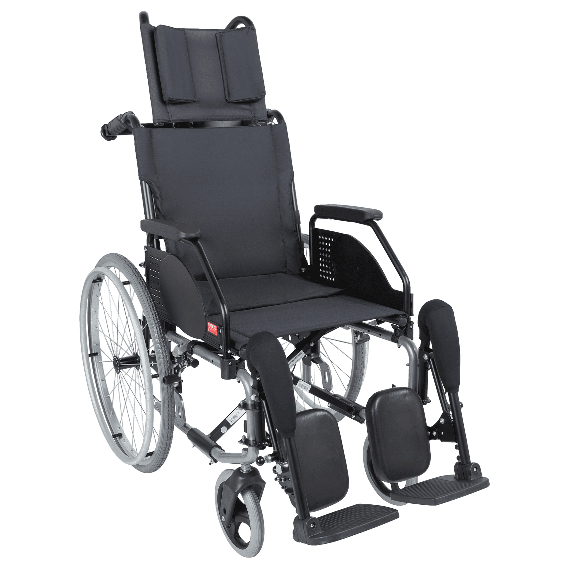 A cadeira de rodas manual CELTA CAMA permite ao utilizador assumir a posição horizontal de forma confortável, combinando a reclinação de costas com a elevação dos patins. Reclinação de costas controlada ao nível dos punhos, desde 90º a 170º. Estrutura reforçada e cruzeta tripla para proporcionar maior resistência. Apoio de cabeça com cunhas laterais, ajustável em altura, e suportes de tronco para maior conforto e estabilidade do utilizador. Apoia-braços facilmente destacáveis, patins elevatórios destacáveis e rebatíveis para fora, com apoio almofadado para a região posterior das pernas. Encartável para facilitar o transporte. Peso máximo utilizador de 125Kg