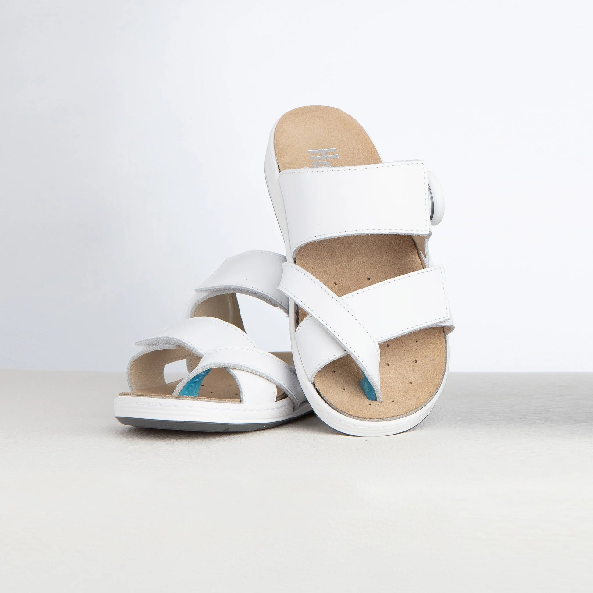 O calçado certo para Hallux Valgus (Joanete). A deformidade do Hallux Valgus é suavemente corrigida com a ajuda da tira no 1º dedo, ajustável individualmente. As "BianGo" são totalmente brancas. O couro superior consiste em couro liso de alta qualidade.