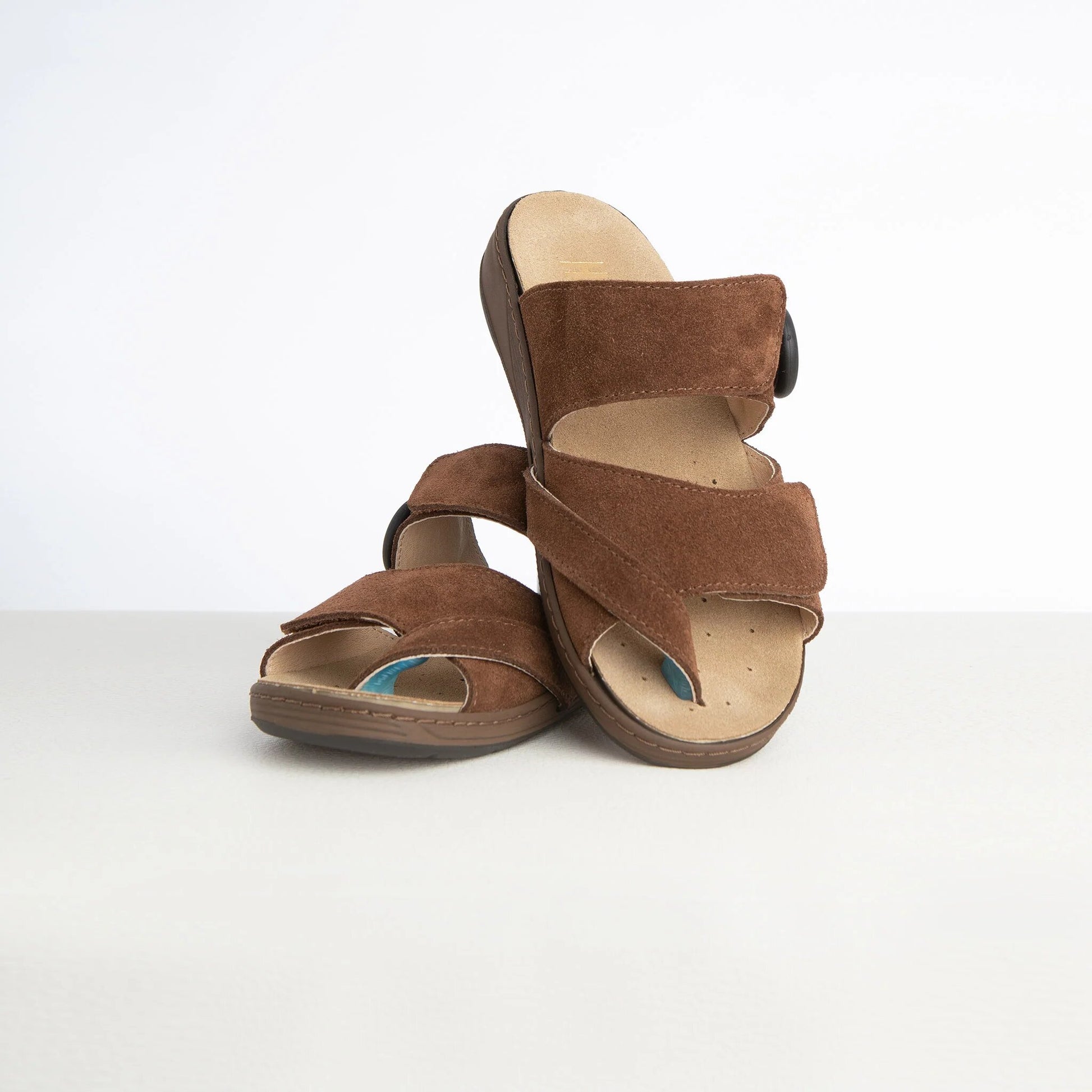 O calçado certo para Hallux Valgus (Joanete). A deformidade do Hallux Valgus é suavemente corrigida com a ajuda da tira no 1º dedo, ajustável individualmente. As elegantes e casuais "FreeGo" são confeccionadas em camurça castanha de alta qualidade, podem ser usadas de forma elegante, casual e otimizada para muitas áreas de trabalho.