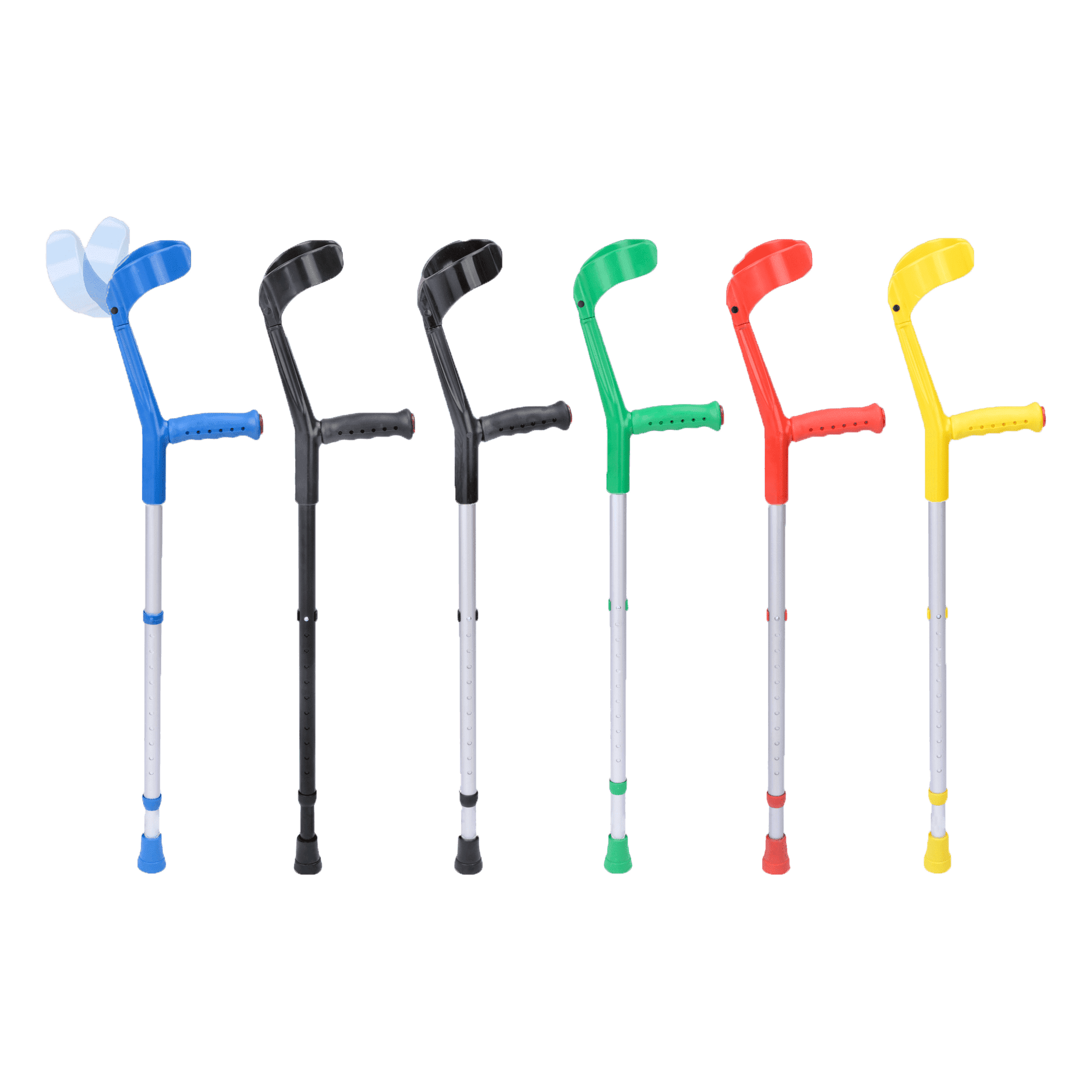 Destinadas para utilizadores que não podem suportar peso ou necessitam de diminuir o peso efetuado sobre um ou ambos os membros inferiores. São constituas por tubos em alumínio com elevada resistência e baixo peso, design atrativo e inovador, ponteiras de 20 mm anti derrapantes para maior segurança, punho macio com refletor, braço móvel e regulação em altura na zona inferior (possibilidade de aplicar um extensor para utilizadores mais altos). Possibilidade de poder colocar amortecedor de forma a reduzir as forças de impacto e a proteger as articulações em especial a do ombro.