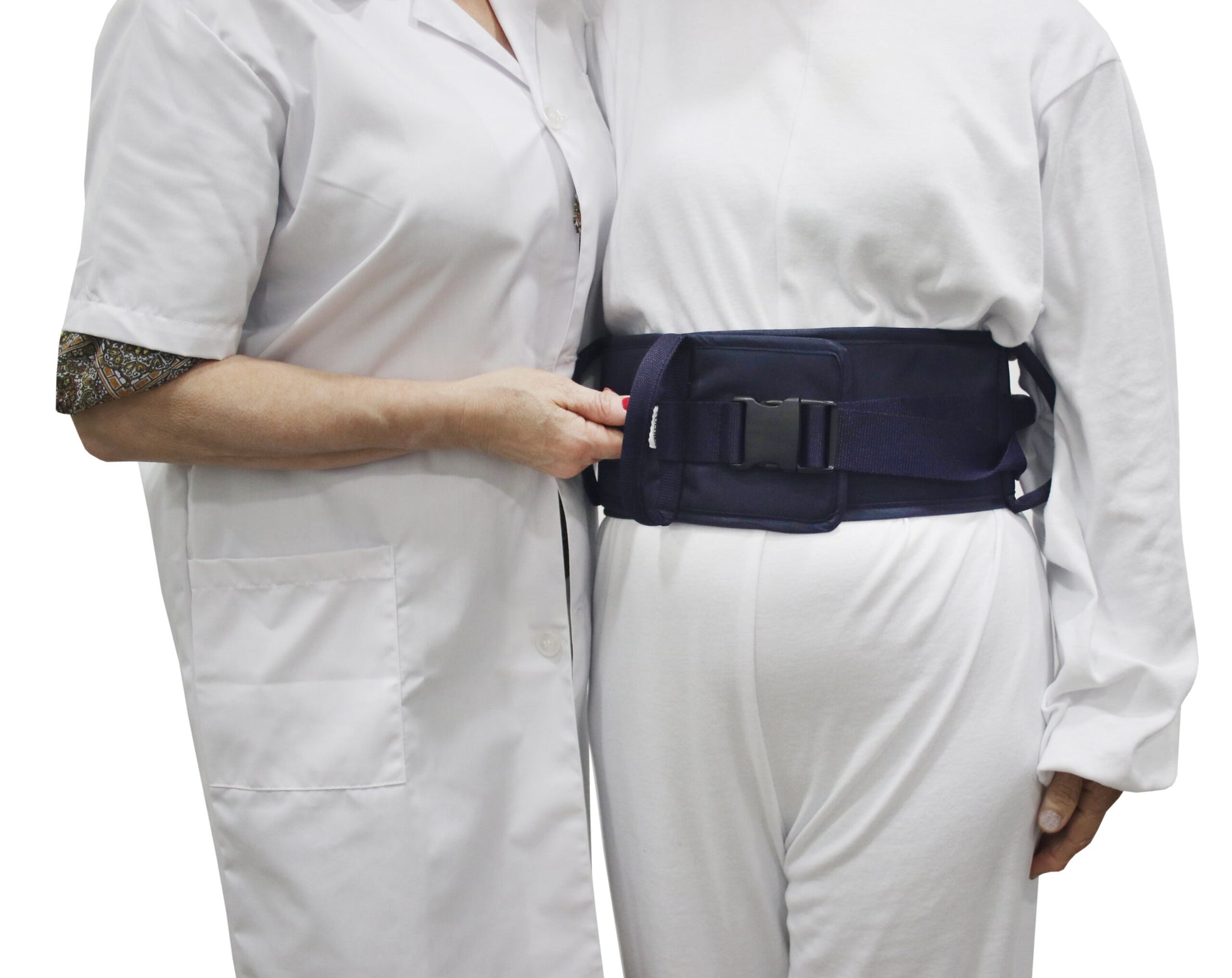 O Mini Transfer de Cintura (Modelo Premium) dispõe de pegas dispostas ao longo do cinto e permite apoiar na mobilidade do paciente, permitindo a sua transferência em pequenas distancias.
