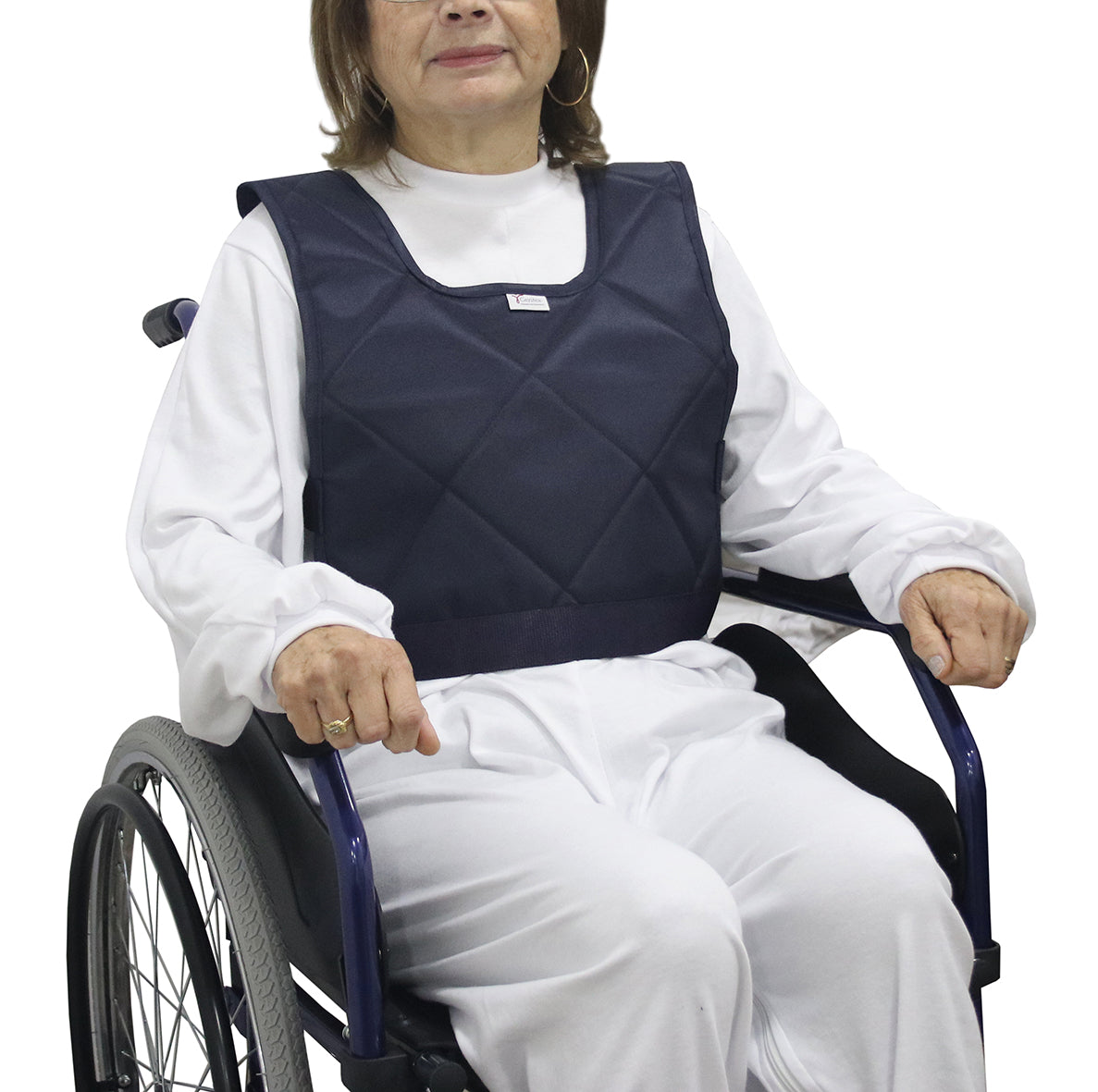 O Colete de Segurança permite a fixação do utilizador à cadeira rodas tendo o posicionamento correto e evitando quedas provocadas pela pendência ou instabilidade do tronco.
