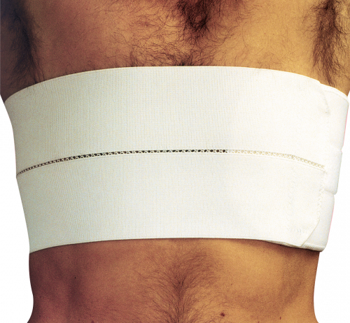 Faixa pós-operatória Toráxica, com duas bandas flexíveis, respiráveis e ventiladas. Com uma altura de 16cm, adapta-se ao corpo de forma anatómica e justa, sendo o aperto feito à frente por velcro.