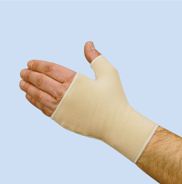 Luva elástica para contenção da mão com elevado grau de conforto e proteção.