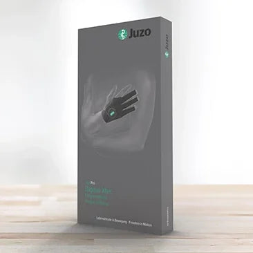 Digitus Xtec da Juzo é fácil de pôr e tirar e pode ser aberto a todo o comprimento com fechos de velcro sobrepostos. Na palma da mão, um material de microfibras não elástico proporciona maior conforto durante o uso. O tecido de microfibra parcialmente elástico nas costas da mão compensa as diferenças de perímetro, é respirável e evita a transpiração.