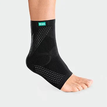 Em tecido de malha e com forma anatómica, Malleo Xtra adapta-se com flexibilidade à articulação, enquanto as suas microfibras, suaves para a pele, transportam a humidade para o exterior e garantem assim uma ótima regulação da temperatura. Duas almofadas de silicone de forma anatómica (calcanheiras de silicone) exercem, durante o movimento, um efeito de massagem sobre o tecido, que é assim estimulado.