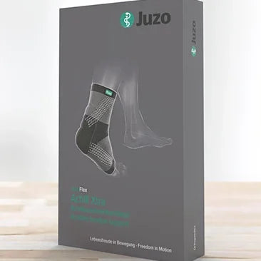 O tecido de malha da suporte elástico não contém látex, é especialmente respirável e regula de forma ótima a temperatura, enquanto transporta a humidade para o exterior. O efeito compressível da malha ajuda a reduzir mais rapidamente o edema. Os rebordos da Pé elástico JuzoFlex Achill Xtra ajudam a diminuir a pressão e proporcionam conforto durante o uso.