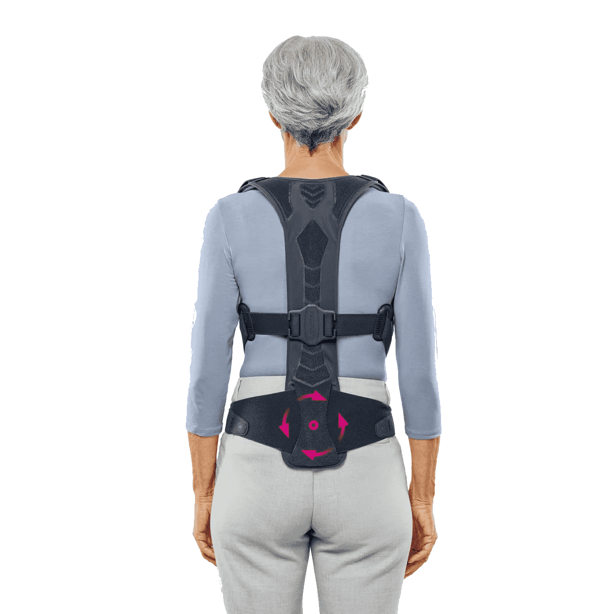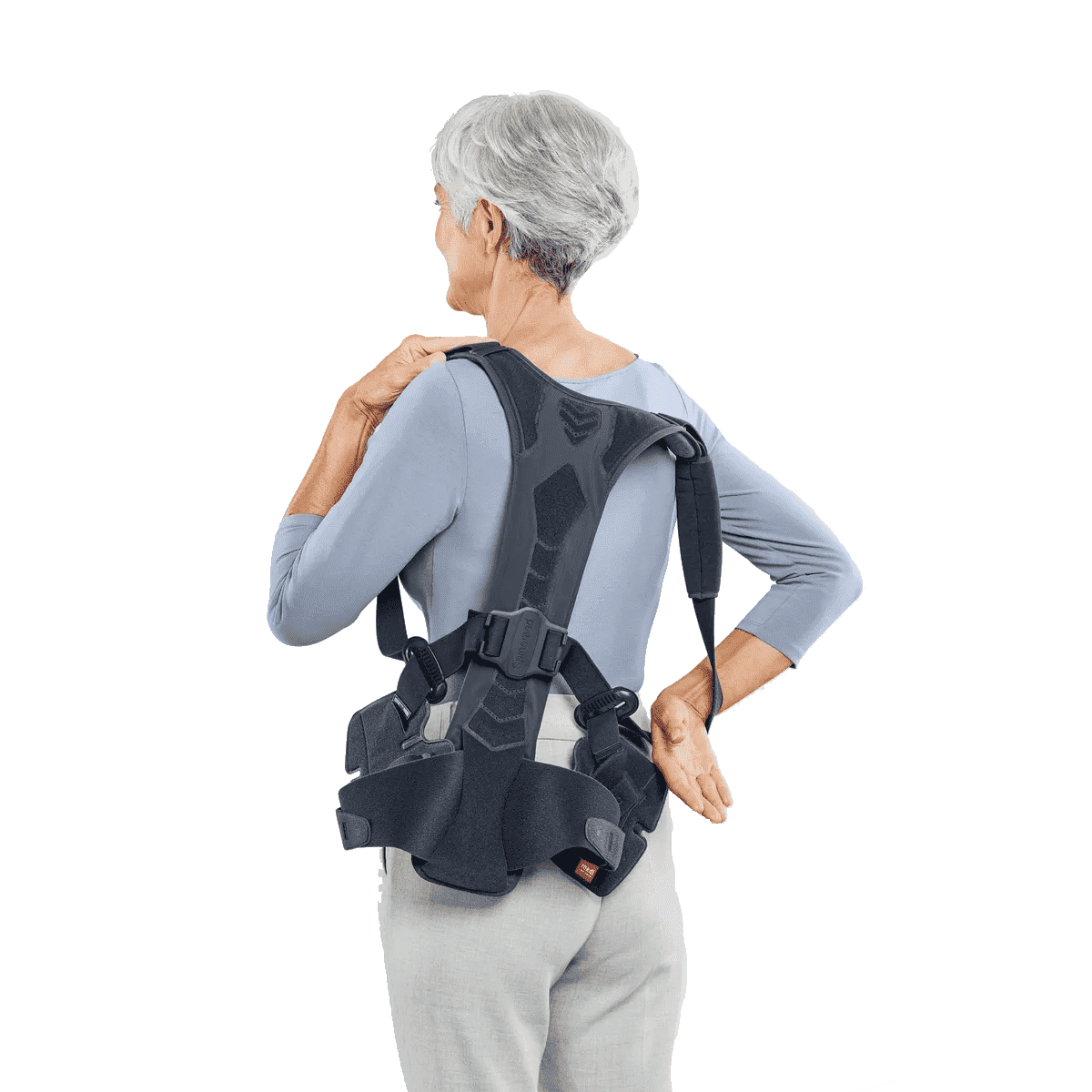 O Spinomed® define novos padrões na terapia funcional em caso de fraturas vertebrais por osteoporose. É uma ortótese que contribui ativamente para o fortalecimento dos músculos do tronco ao mesmo tempo que alivia e corrige a postura da coluna no plano sagital pelo sistema de biofeedback. Promove melhoria na capacidade respiratória e na qualidade de vida, assim como, na redução da dor. É adequada para fraturas vertebrais, mas também outras indicações que requerem o alívio e/ou correção da coluna torácia e lombar.